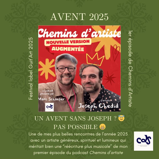 Pour ce temps de lâAvent, il Ă©tait impossible de ne pas Ă©voquer Joseph â surtout quand jâai eu la chance de passer une heure en tĂȘte-Ă -tĂȘte avec lui, ce charpentier de la bonne musique et chanson française, Joseph Chedid pour Chemins dâArtiste.
